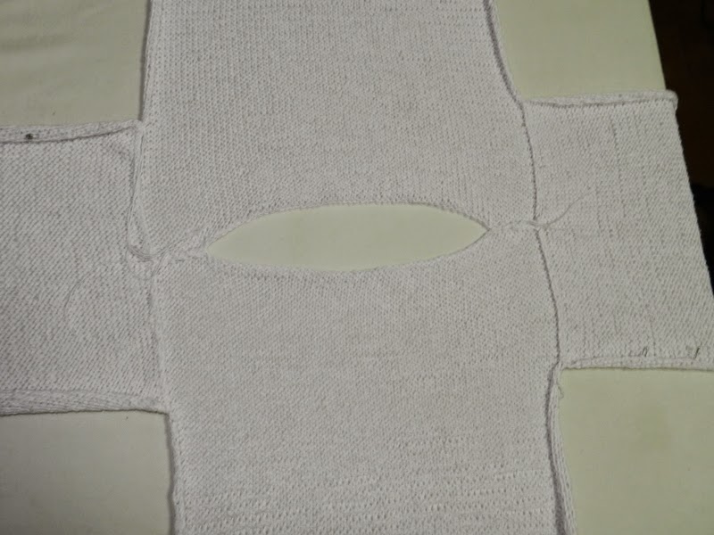 Fiz primeiro a frente, depois as costas, costurei os ombros e fiz as mangas direto das cavas.